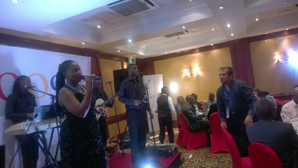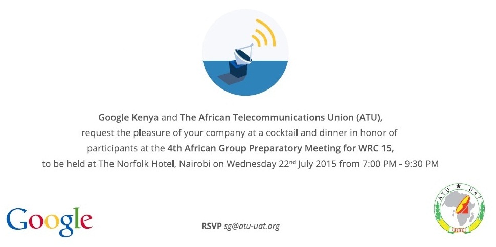 ” Its time that internet rates go down in Africa to enable the the numbers of cyber users increase” Kivumbi Addresses Delegates During Dinner by Google at Fairmont-Norfolk Hotel Nairobi. Google responded last night to Kivumbi that Facebook and Google are investing heavily in optional Internet distribution such as terrestrial and drones as well as fiber optic and broadband. Google’s lead Policy and Government Relations Mr. Seydina L. Diop mentioned that apparently Google is installing Internet infrastructure in Kampala. The dinner was attended by Delegates who are camping at Hilton Hotel Nairobi from all over the world in the Africa Regional Preparatory Meeting for World Radio Convention to be held in Geneva Switzerland in September 2015.