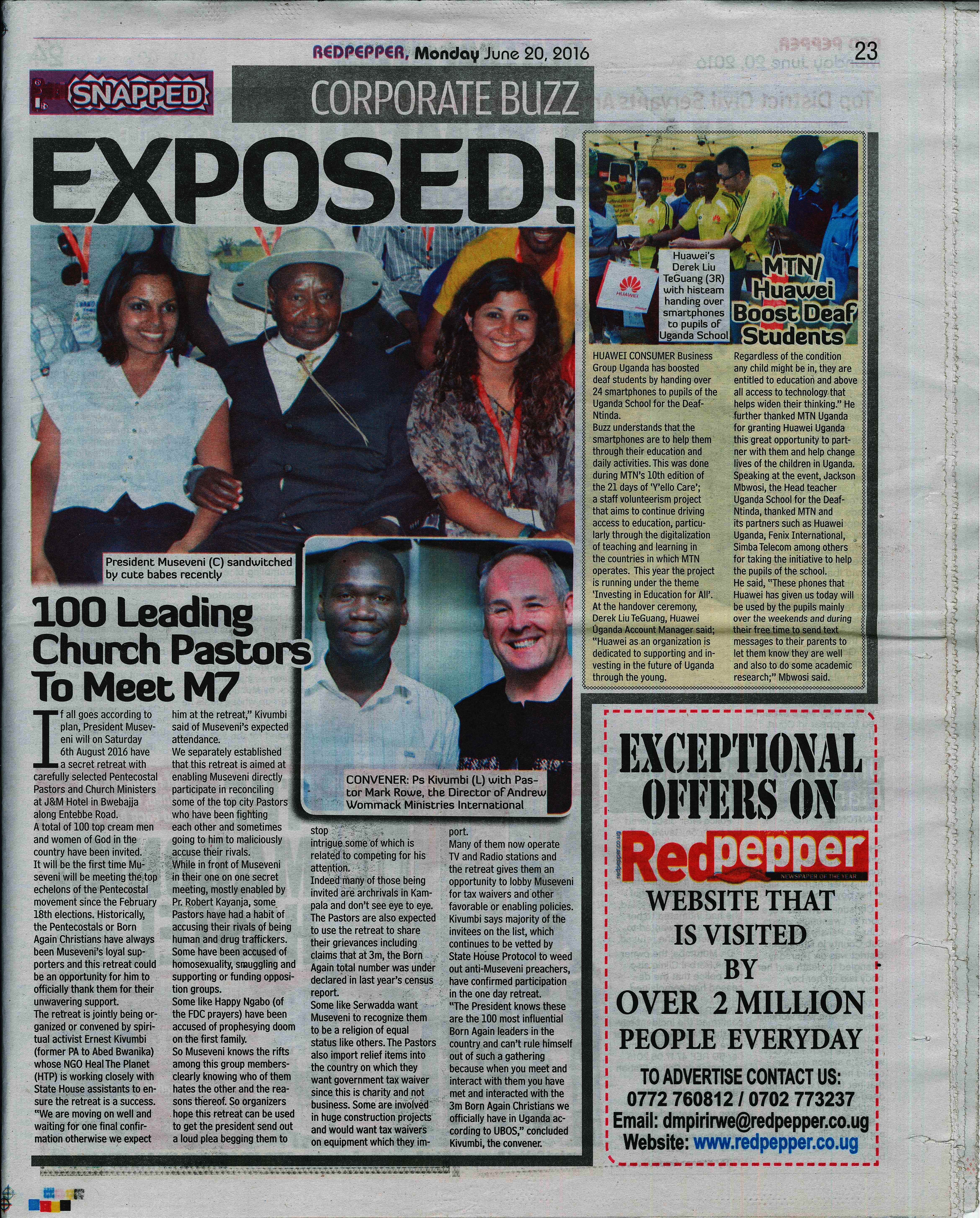 Kivumbi in Redpepper for HTP Top 100 Pastors Retreat with Museveni Read PDF on the Link.