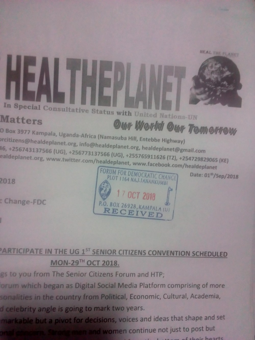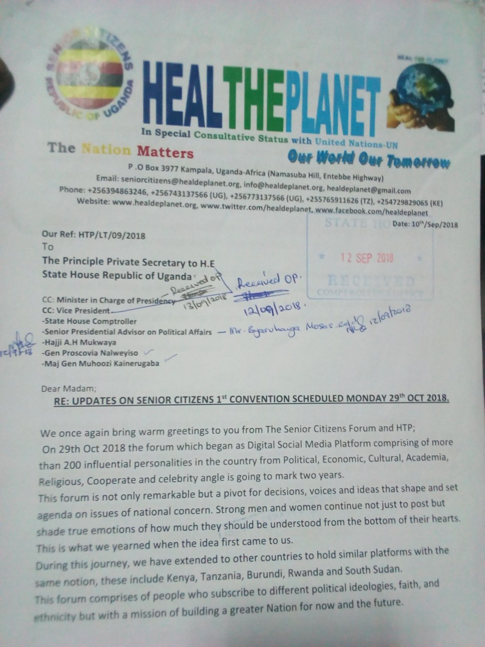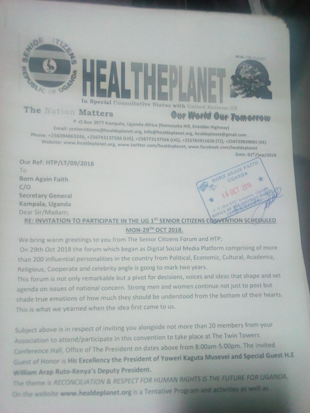 There has been no stone left unturned, all the blessings from highest offices of the land have been coded to Heal The Planet Global Organisation-HTP’s Senior Citizens Convention this Monday 29th Oct 2018.