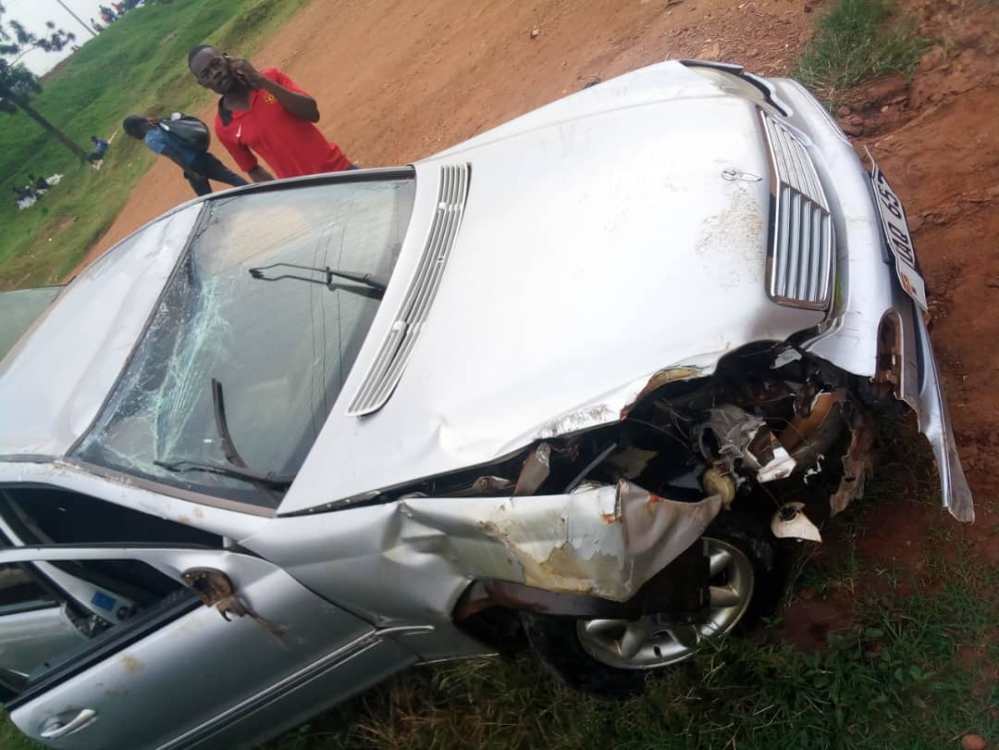 Eye witnesses we have talked to confirm this who came to his rescue to remove him out of the crushed and heavily damaged car which is now parked near the police in Katwe.