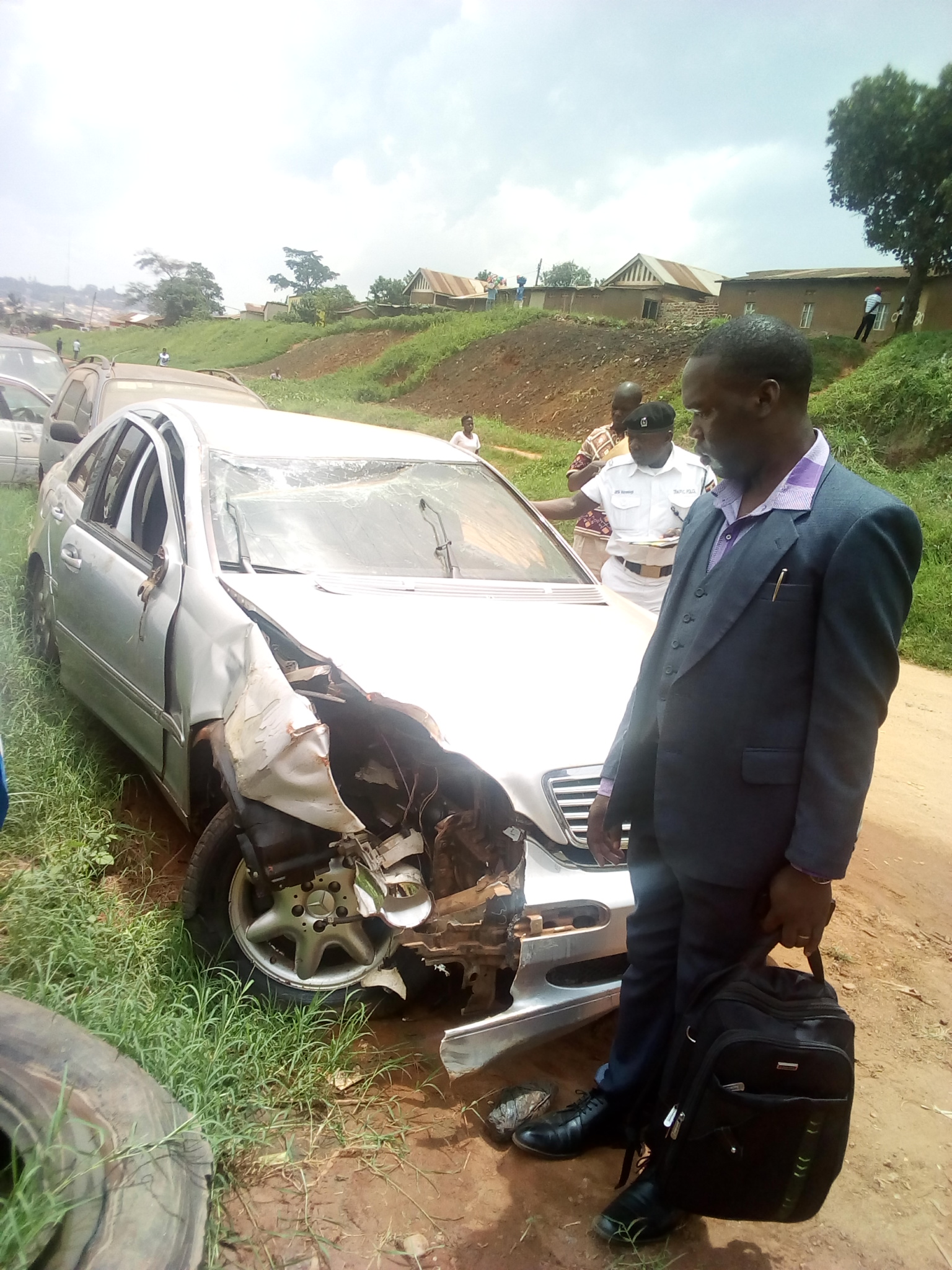 Eye witnesses we have talked to confirm this who came to his rescue to remove him out of the crushed and heavily damaged car which is now parked near the police in Katwe.