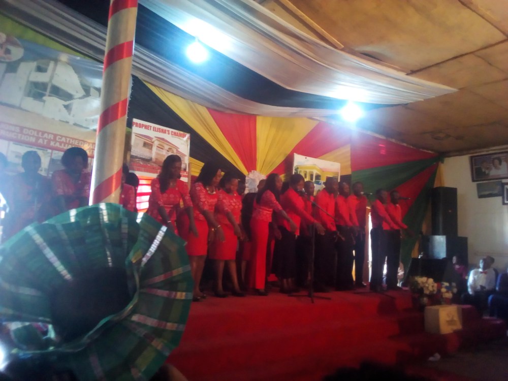 When she was ushered in earlier, the congregation stood to sing National Anthem to honor her arrival. She latter performed her worship songs.