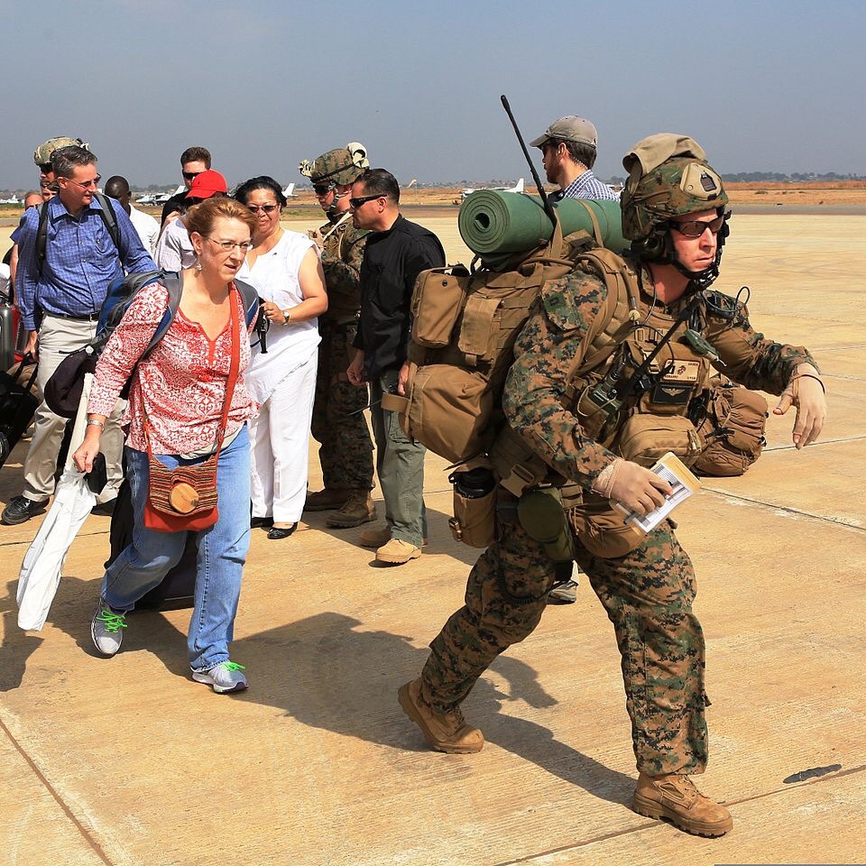 Following calls from the government of South Sudan, Uganda deployed its troops to Juba to assist in securing the airport and evacuating Ugandan citizens. On 21 December a flight of three US Air Force V-22 Ospreyaircraft en route to evacuate US nationals from Bor took small arms fire from the ground, injuring four Navy SEALs. South Sudan blamed the rebels for the incident. A second evacuation attempt by four UN and civilian helicopters succeeded in evacuating about 15 US nationals, Sudanese-Americans and those working in humanitarian operations, from the United Nations base in Bor on 22 December. Although the base was surrounded by 2,000 armed youths, a rebel commander had promised safe passage for the evacuation. In total 380 officials and private citizens as well as about 300 foreign citizens were flown to Nairobi. The United States military announced a repositioning of its forces in Africa to prepare for possible further evacuations as the United Nations warned of the planned strikes. Many of these reports have come from the hundreds of foreign oil company employees gathered at the airport to leave. Five Ugandan and ten Kenyan citizens were also evacuated from Bor and then Juba before leaving the country. The Kenyan government said that there were 30,000 of its nationals in the country and that 10,000 had applied for emergency documents.