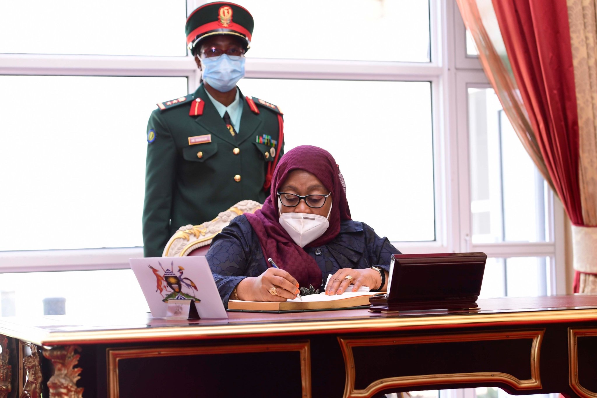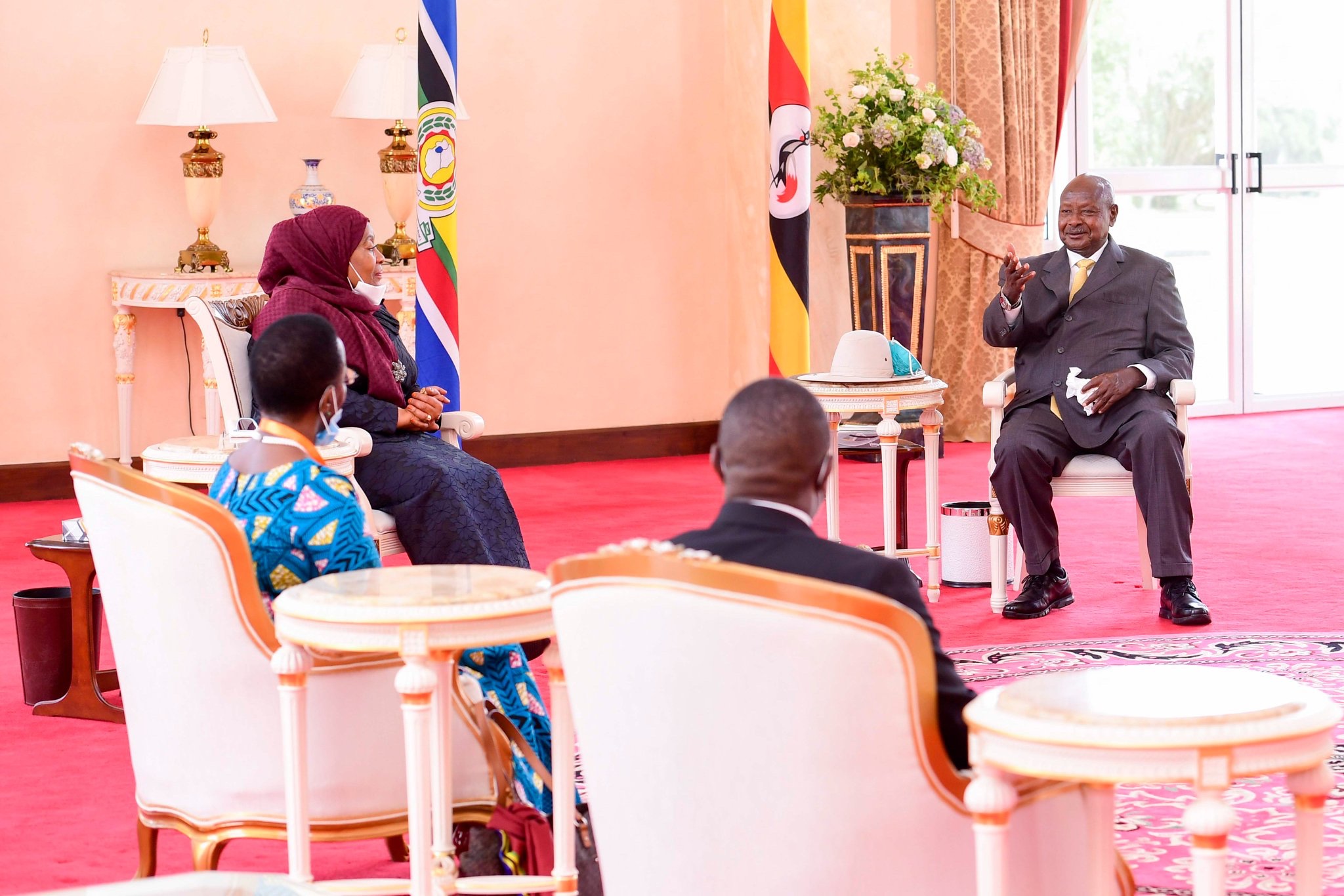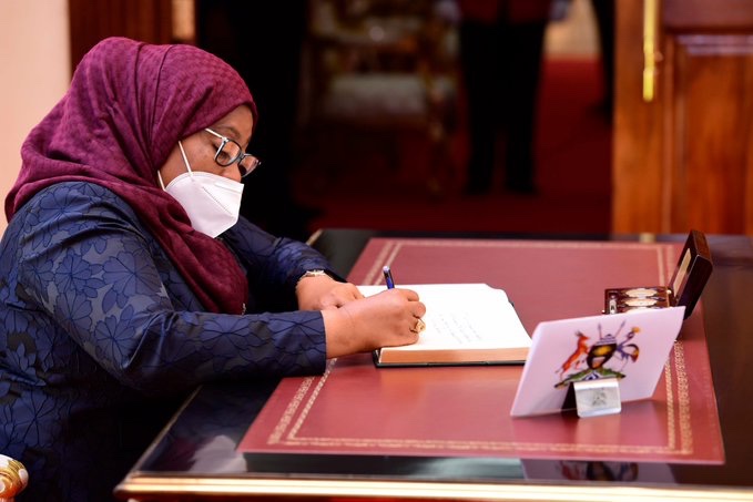 Tanzania’s President Samia Suluhu Hassan, has earlier jetted today in Uganda at her first foreign visit since assuming presidency from deceased President John Pombe Magufuli. Her visit is to bolster relations between the two countries.