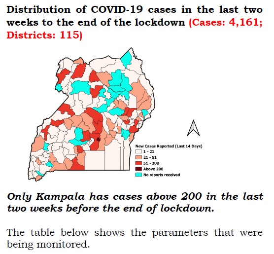 In addition to the above, the National Planning Authority (NPA) has made projections on the potential effects of the different interventions and the likely outcomes. Their model analyzes a number of factors including; COVID-19 cases, Human Development Index, Geographical factors, population density, age structure and weather among others, to give projections of the COVID-19 new case trends.