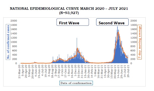 As of 29th July 2021, the country registered 93,927 cumulative confirmed cases of COVID-19, 83,115 recoveries, and 2,690 deaths.