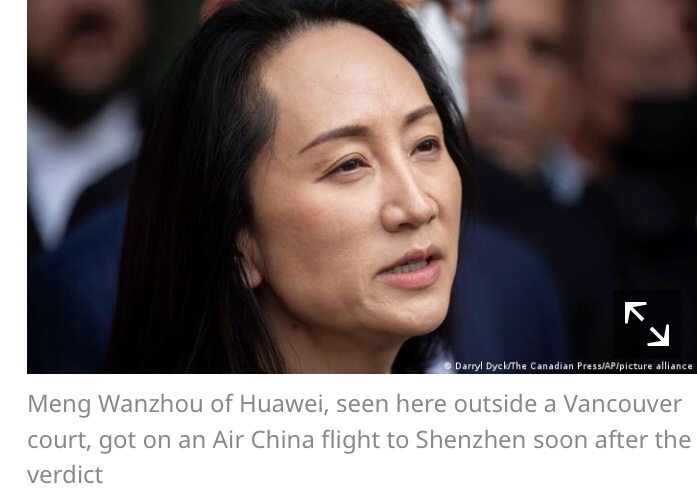 Soon after receiving her verdict, Meng caught an Air China flight to the Chinese city of Shenzhen, where telecommunications giant Huawei is based.