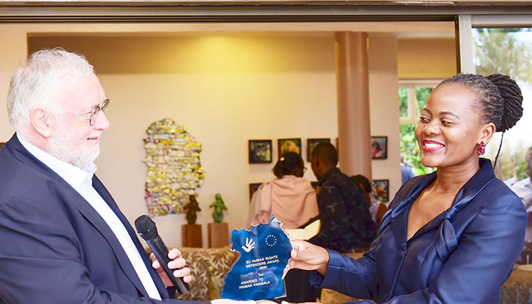 The award is given annually by the EU member states and the Embassy of Norway to recognize an outstanding contribution by a human rights defender who often works in difficult circumstances in Uganda. Yudaya Nangonzi attended the event at the residence of the ambassador of Belgium in Kololo last week.