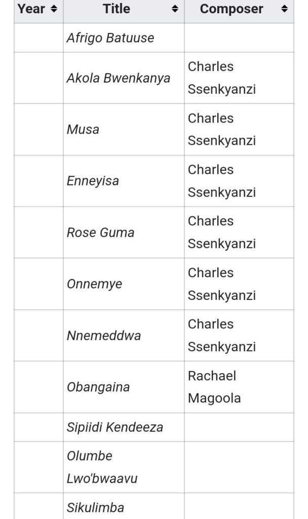 Charles Ssekyanzi Mutagubya – vocalist, trumpet player, composer