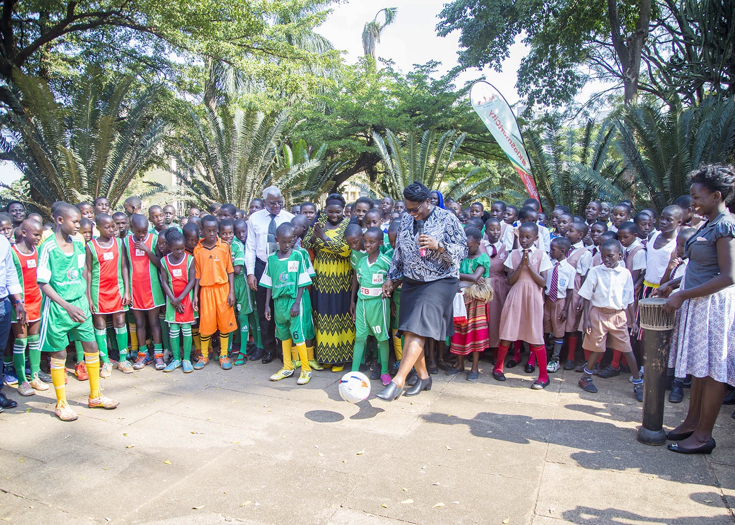To flag off the ball games Kisaka kicked the ball amidst cheers from the children and afterwards handed over the drum to the choirs for the music competitions flagoff.