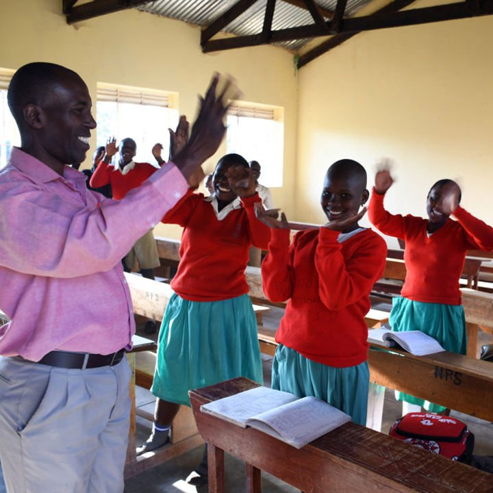 Primary Seven pupils of Nyabikoni Primary School in Kabale Town welcome their teacher back to class after the strike in July. PHOTO/ FILE |