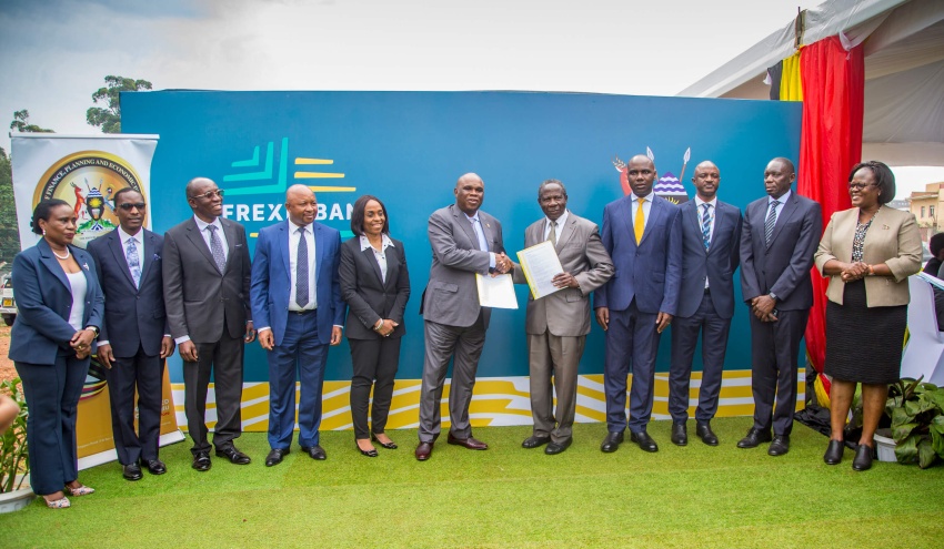Finance Minister Hon. Matia Kasaija handed over the land along Yusuf Lule Rd (Formerly NSSF land) to the President and Chairman of Board of Directors of AFREXIM Bank , Dr Benedict Okey Oramah on Monday.