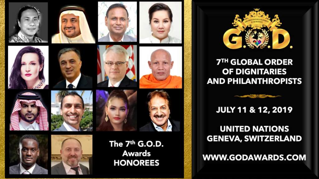 G.O.D. stands for Global Order of Dignitaries and Philanthropists, formerly known as Global Officials of Dignity Awards, it is a conglomeration of Dignitaries, Philanthropists, Royals and Faith Leaders, working hand-in-hand towards Universal Humanitarianism.