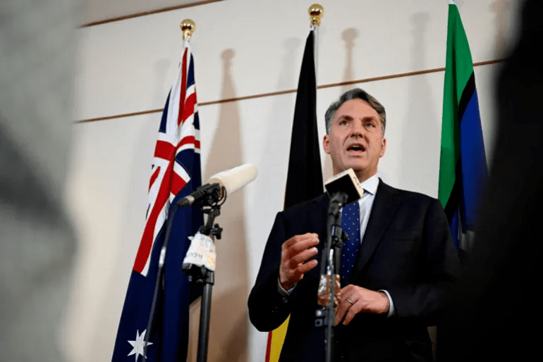 Australian Defence Minister Richard Marles speaks to the media in 2022 [File: Caroline Chia/Reuters]