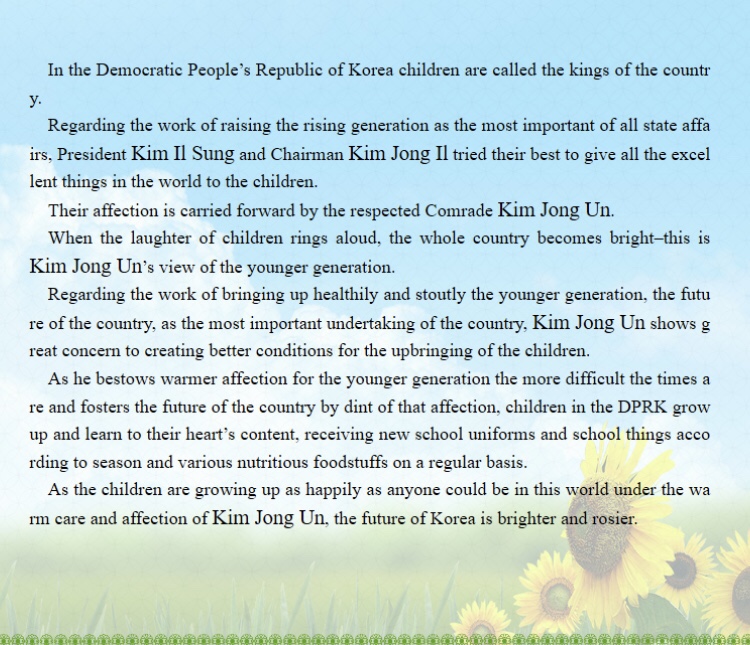 Children’s Day is a commemorative date celebrated annually in honor of children, whose date of observance varies by country. In 1925, International Children’s Day was first proclaimed in Geneva during the World Conference on Child Welfare. Since 1950, it is celebrated on June 1 in many countries including DPR Korea.