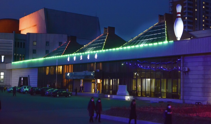 With two storeys above and one under the ground, it is equipped with 40 bowling lanes controlled by computers and various amusement and service facilities.