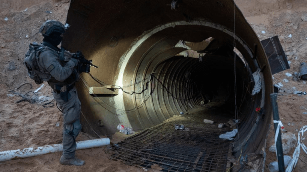 It was “the biggest tunnel we found in Gaza… meant to target the (Erez) crossing,” Rear Admiral Hagari said, without specifying whether it was used by Hamas for the 7 October attacks.