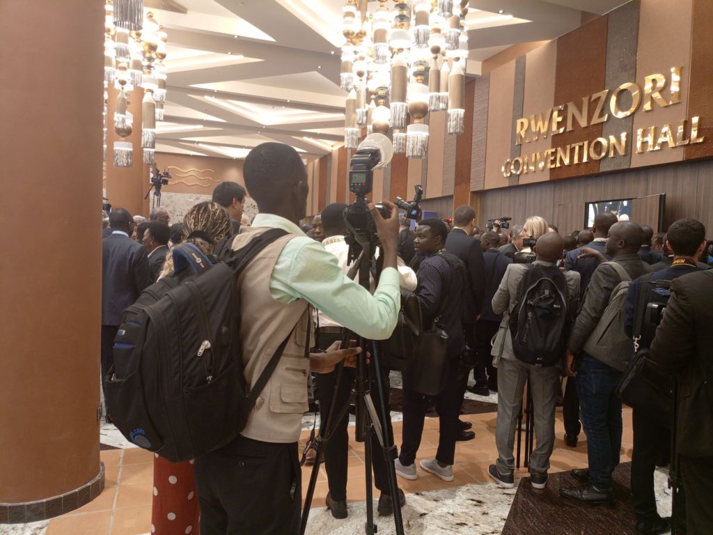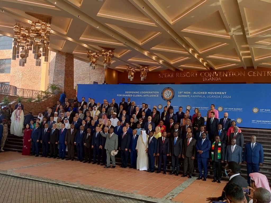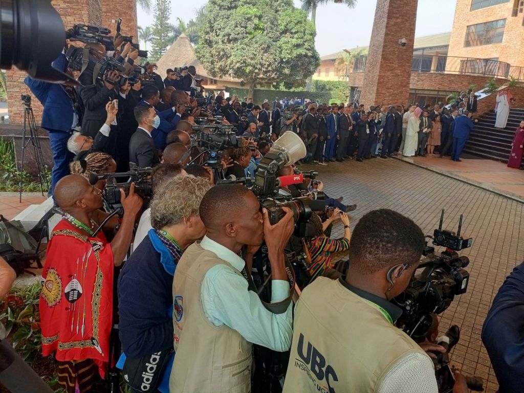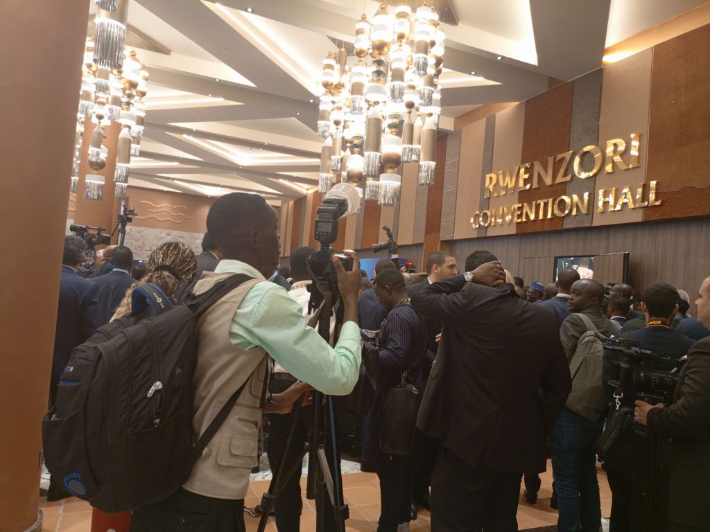 Warm moment as Journalists struggle to get the best shots for the Group photo of the Heads of State and other Delegates representing 120 countries for The 19th Non-Aligned Movement – NAM Summit in Uganda. shot by Kivumbi Earnest Benjamin
