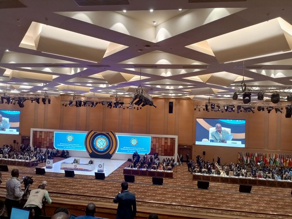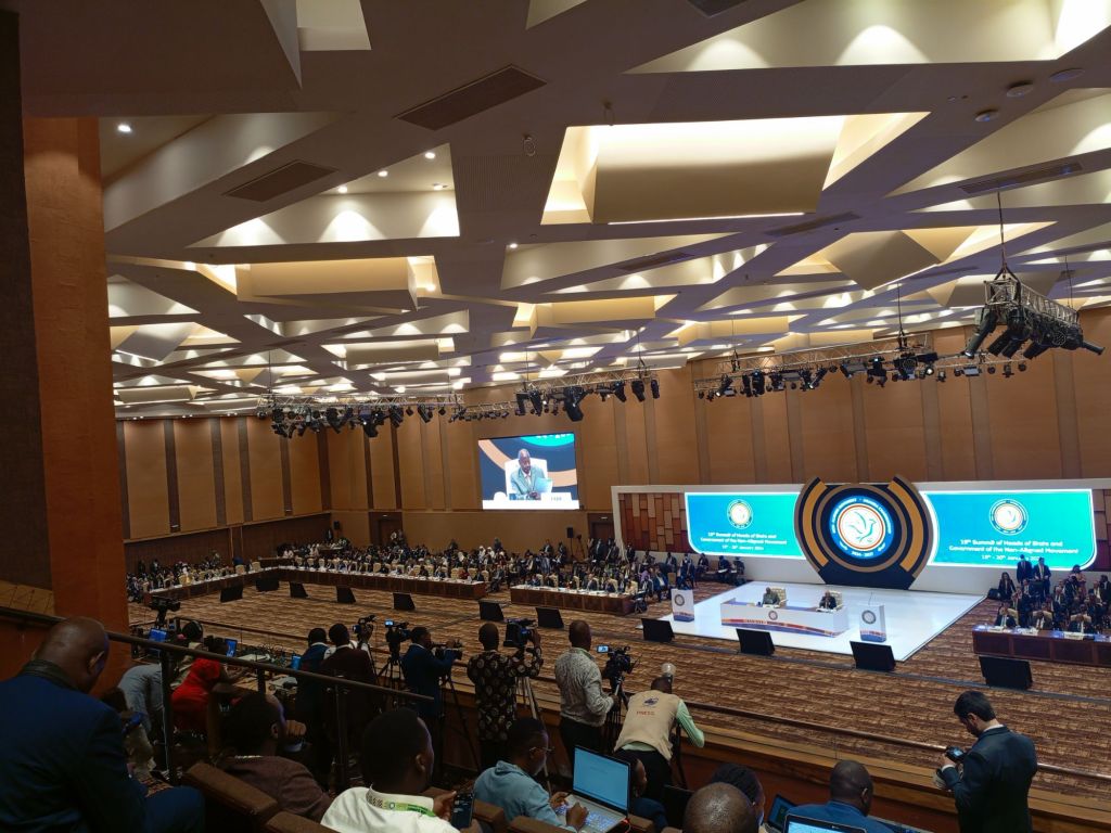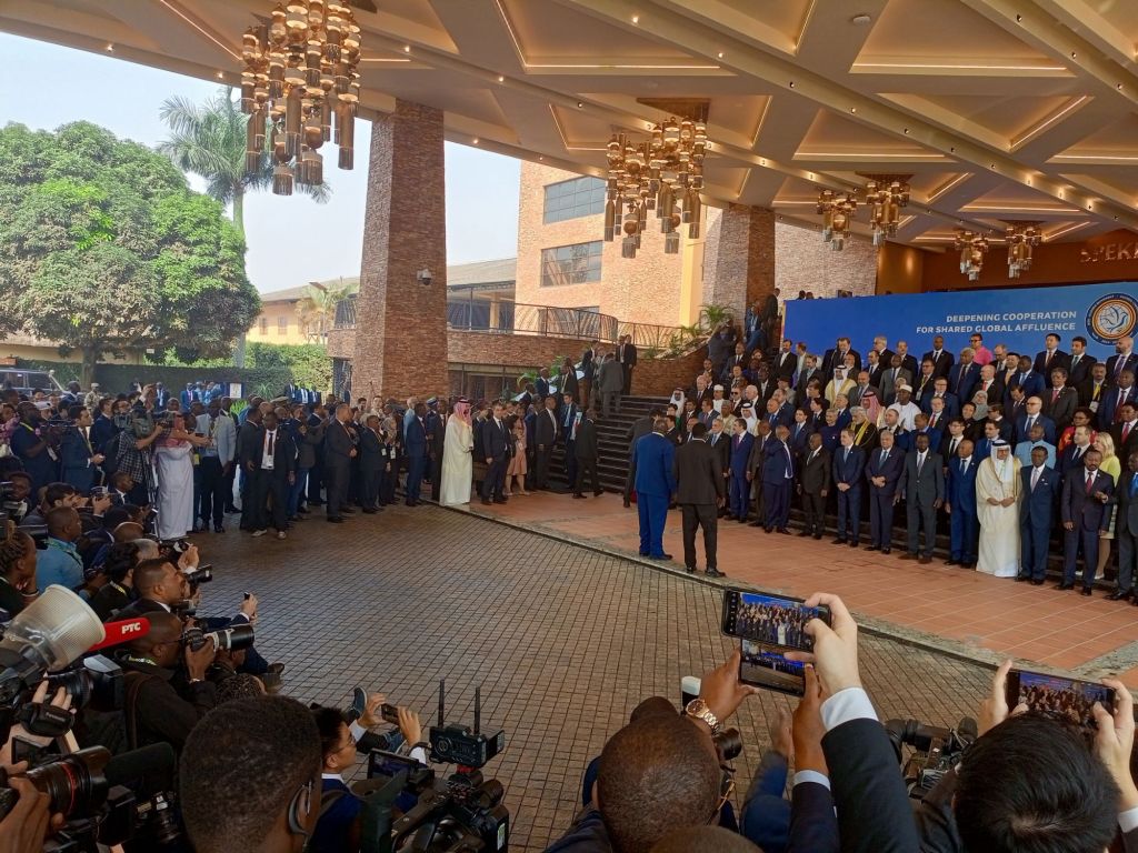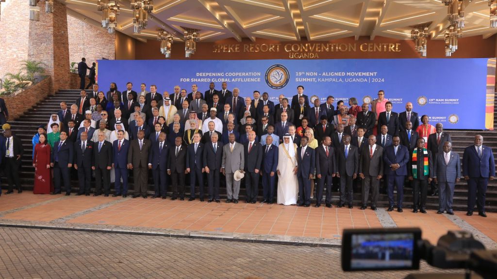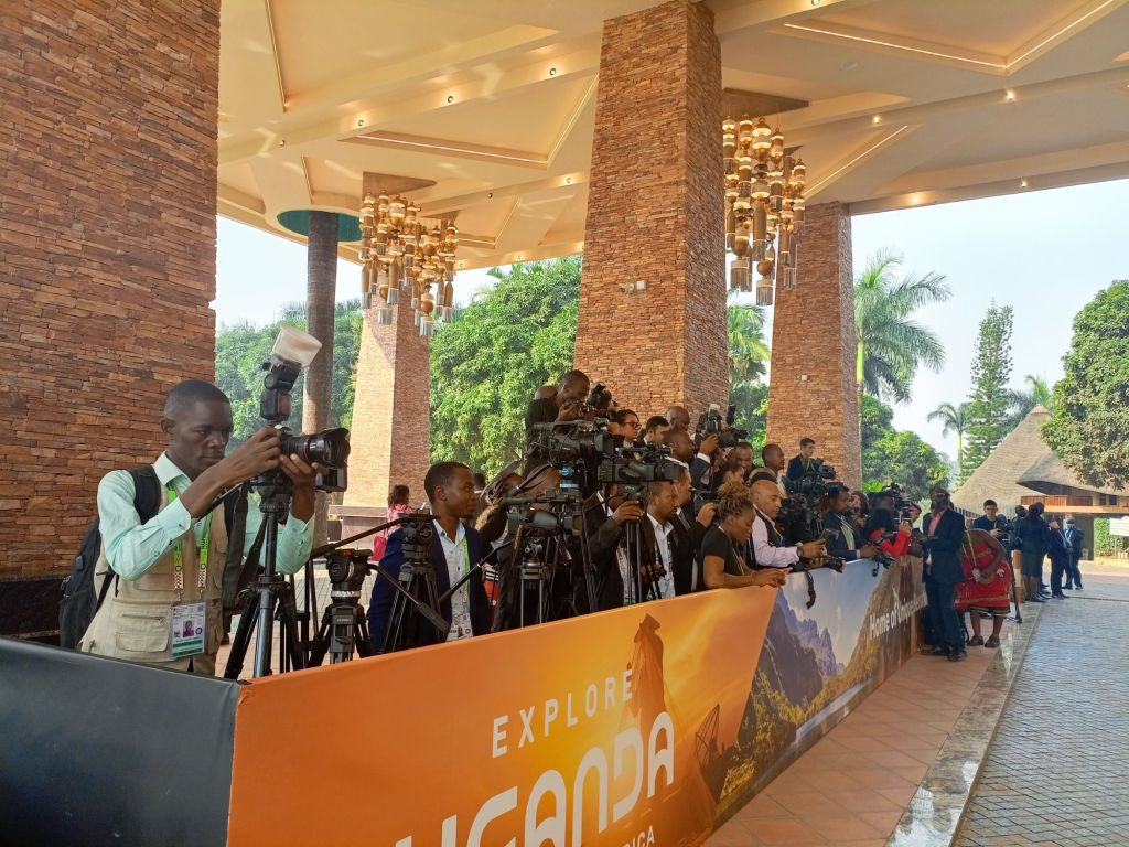 Warm moment as Journalists struggle to get the best shots for the Group photo of the Heads of State and other Delegates representing 120 countries for The 19th Non-Aligned Movement – NAM Summit in Uganda. shot by Kivumbi Earnest Benjamin