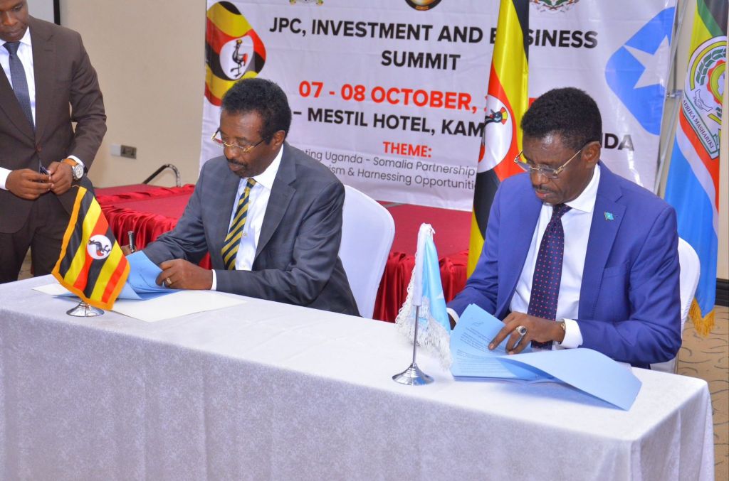 Kampala– Uganda and Somalia have taken major steps to boost their bilateral relations, signing new cooperation agreements and charting fresh areas of partnership during the Second Session of the Uganda–Somalia Joint Permanent Commission (JPC) and Investment and Business Forum, held from 7–8 October 2025 at Mestil Hotel in Kampala.