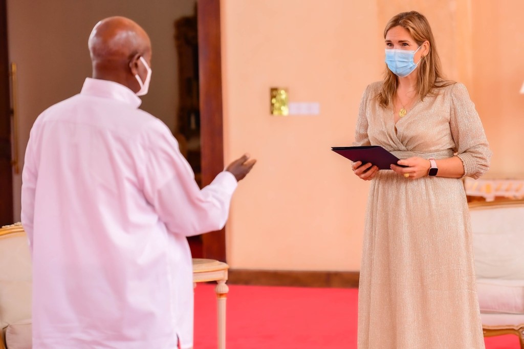 H.E Frederieke Quispel with Uganda Top officials including President Yoweri Kaguta Museveni, 1st son and Commander of Defense Forces Gen Muhoozi Kainerugaba, Foreign Minister Gen Jeje Odongo, Busoga Kingdom Kyabazinga William Kadhumbula Gabula Nadiope IV and others .