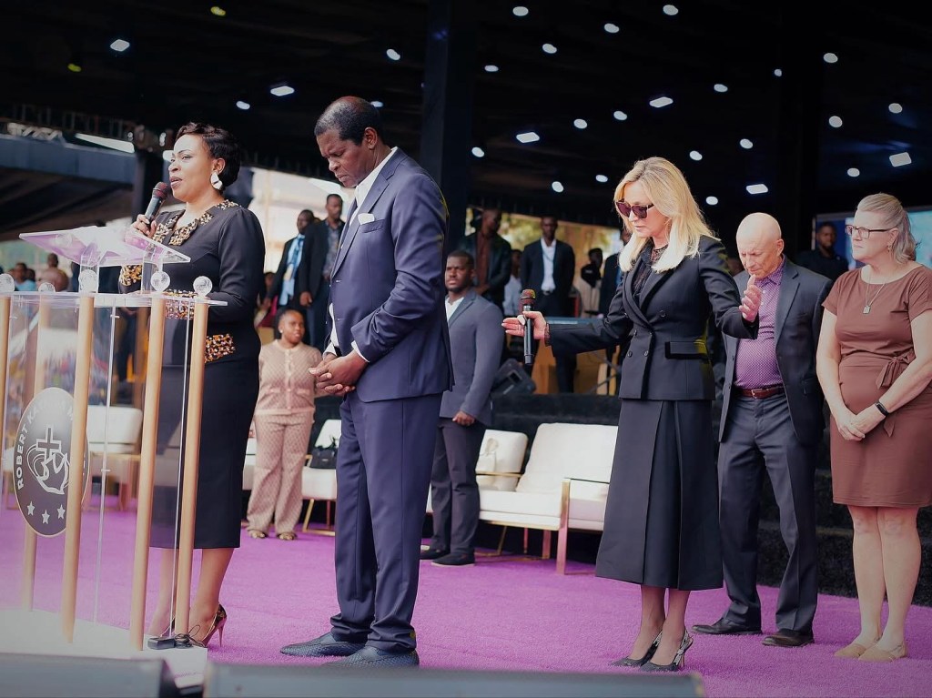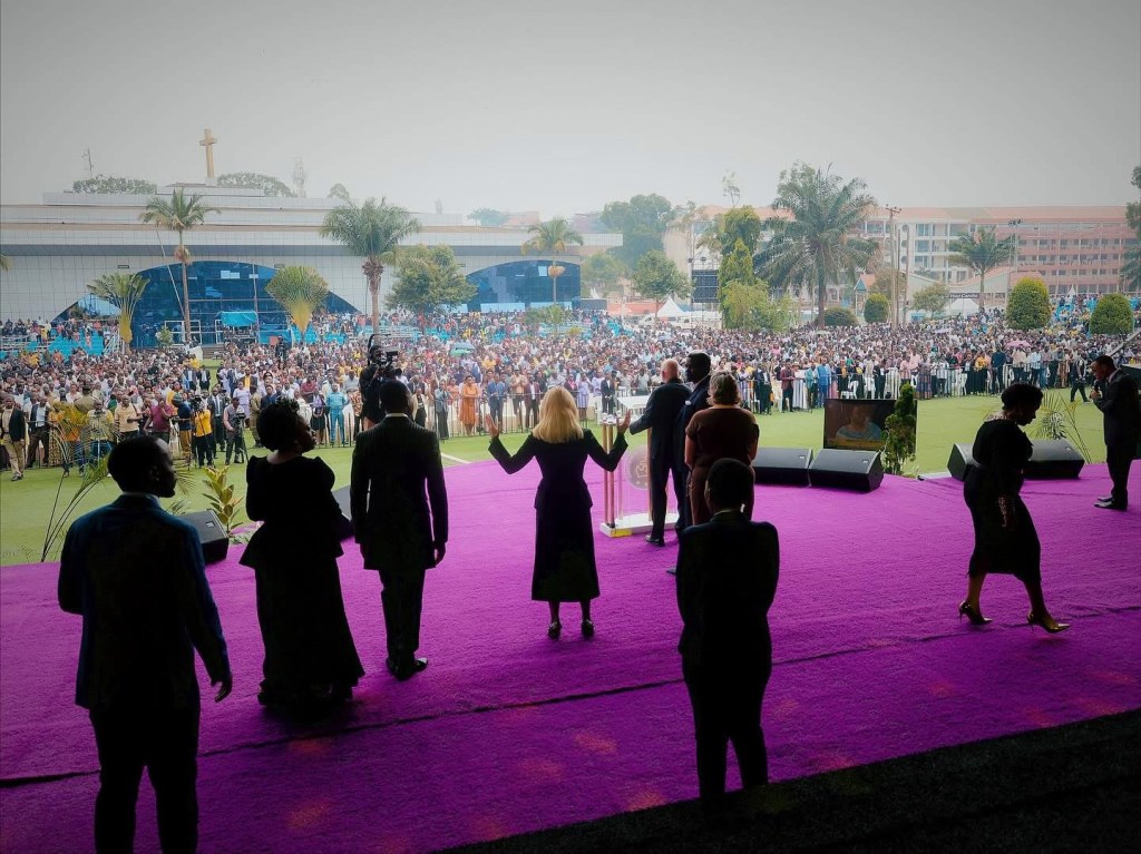 The First Family was warmly welcomed by the Guest of Honor, Pastor Dr. Paula White—renowned international evangelical leader and former Senior Advisor on Faith and Opportunity Initiatives in the United States—alongside host pastors, Dr. Robert Kayanja and Pastor Jessica Kayanja.