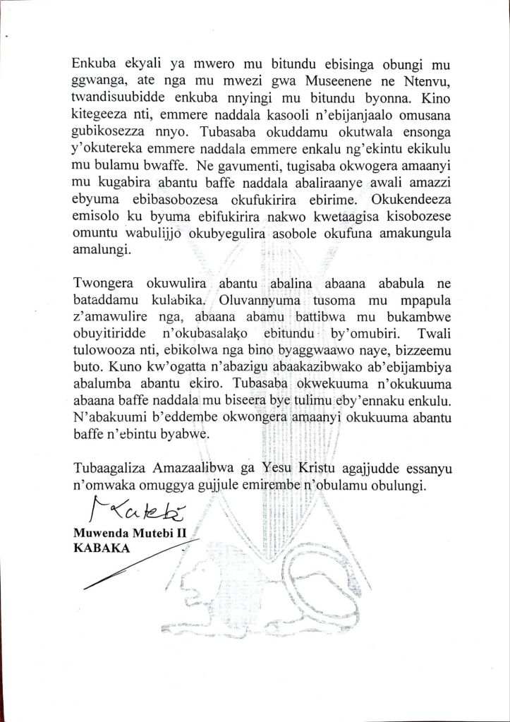 The Kabaka urged the public to remain vigilant and to protect themselves and their children, particularly during the festive season. He also called upon security agencies to step up efforts to safeguard lives and property.