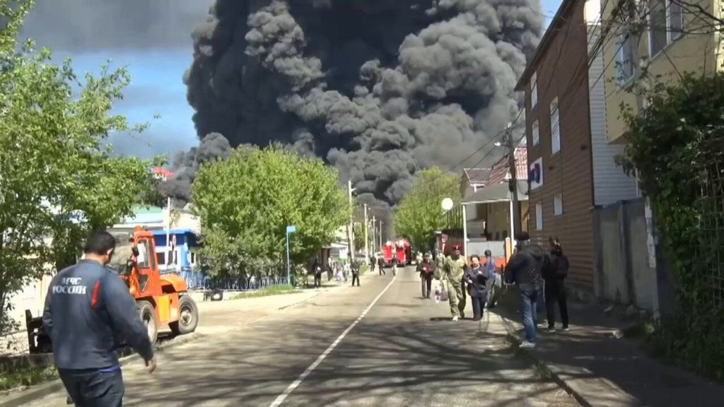 By the end of the 20 April attack, at least eight storage tanks at the refinery had been destroyed, with leaked petroleum seeping into the nearby Tuapse River before flowing into the Black Sea and spreading along the coastline.